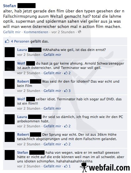 Der Film über den Fallschirmsprung aus dem Weltall - Facebook Fail des Tages 21.10.2012