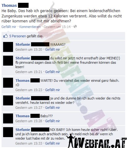 Da will man als Mann romantisch sein und seiner Freundin was schönes auf die Pinnwand posten und schon bricht das Chaos aus. Wörter wie "abnehmen" und "du verstehst nicht" darf man anscheinend in keinem Zusammenhang bringen. Egal was davor oder danach ste
