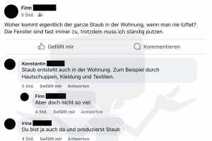 Offenbar ist er selbst der Hauptlieferant für den Staub in seiner Wohnung.