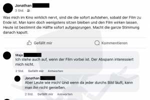 Ein Mann ärgert sich über Kinobesucher.